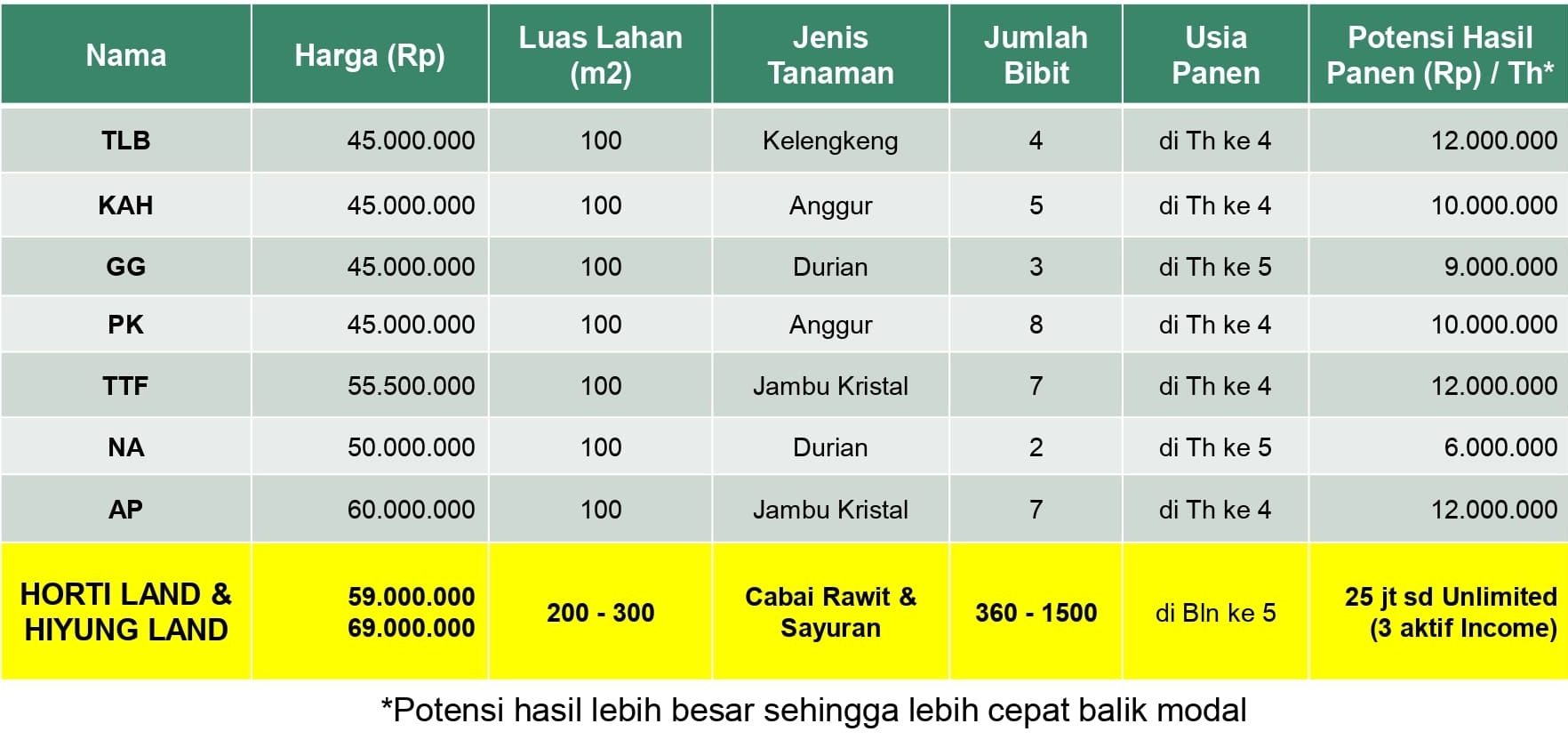 Lihat bagaimana kavling kebun produktif mengungguli investasi konvensional